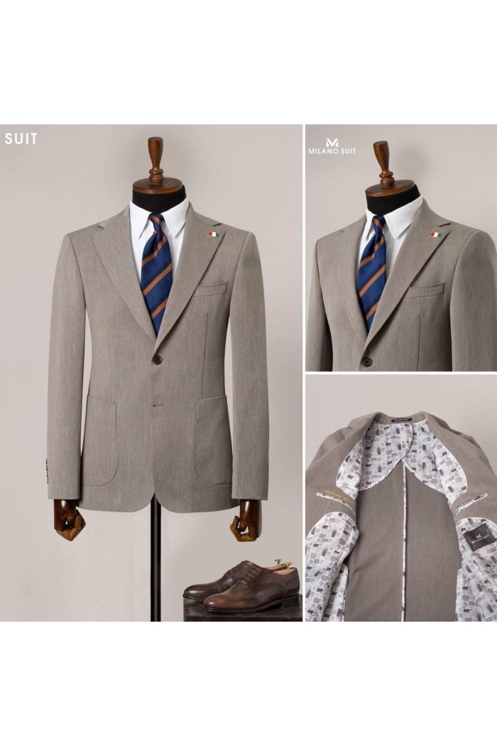 Alfa Suit Slim Fit Açık Gri Düz Takım Elbise